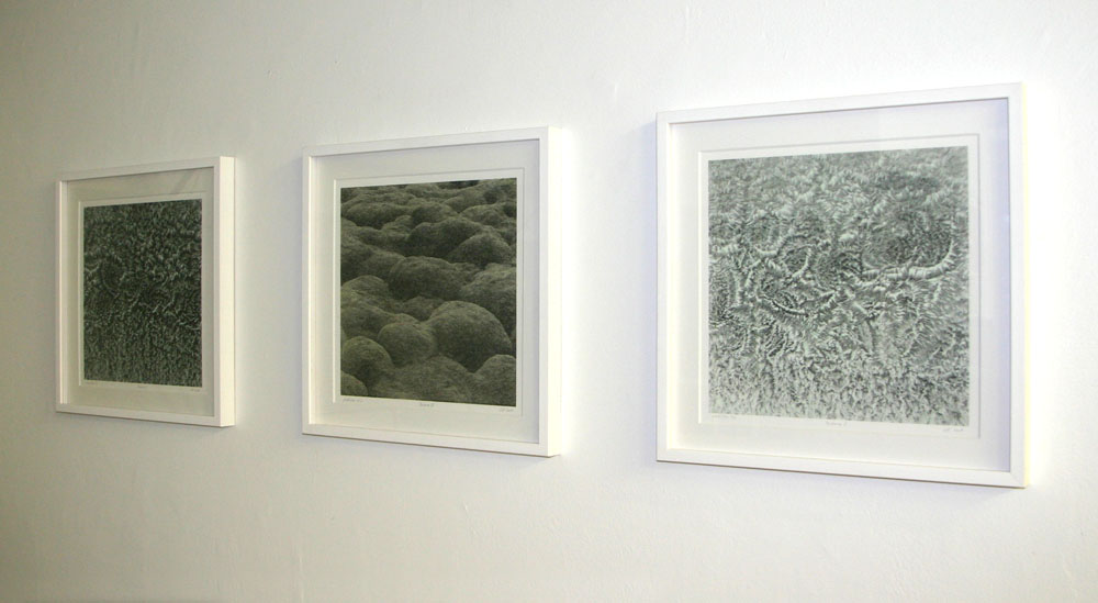 Gudrun is best known for her paintings, installations and video work but she has experimented with different media in her art. The prints exhibited are intriguing experiments from her artistic laboratory.